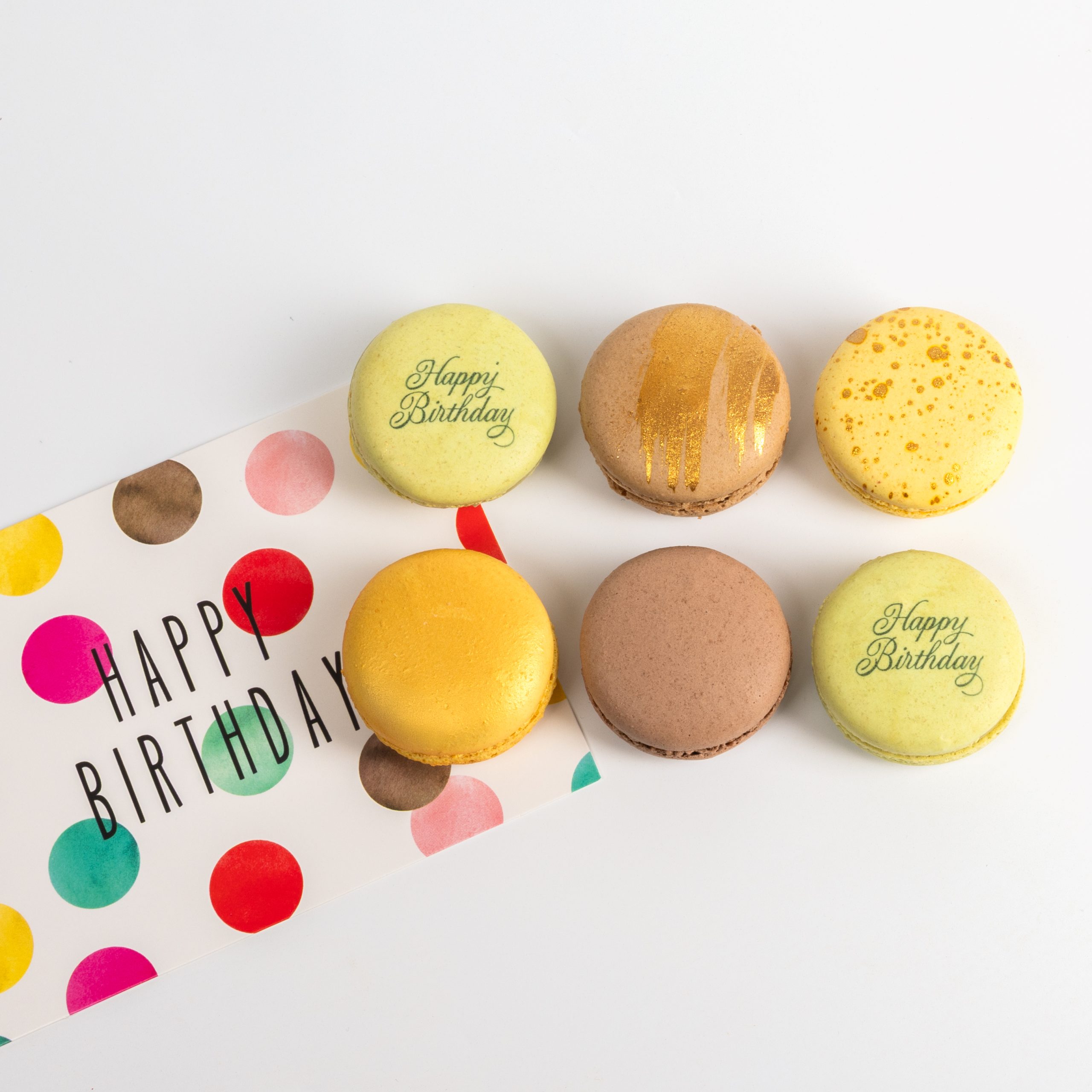 Celebrate Birthdays in style with our luxury Macaron boxes, gluten free and made from natural ingredients. Next day delivery available.