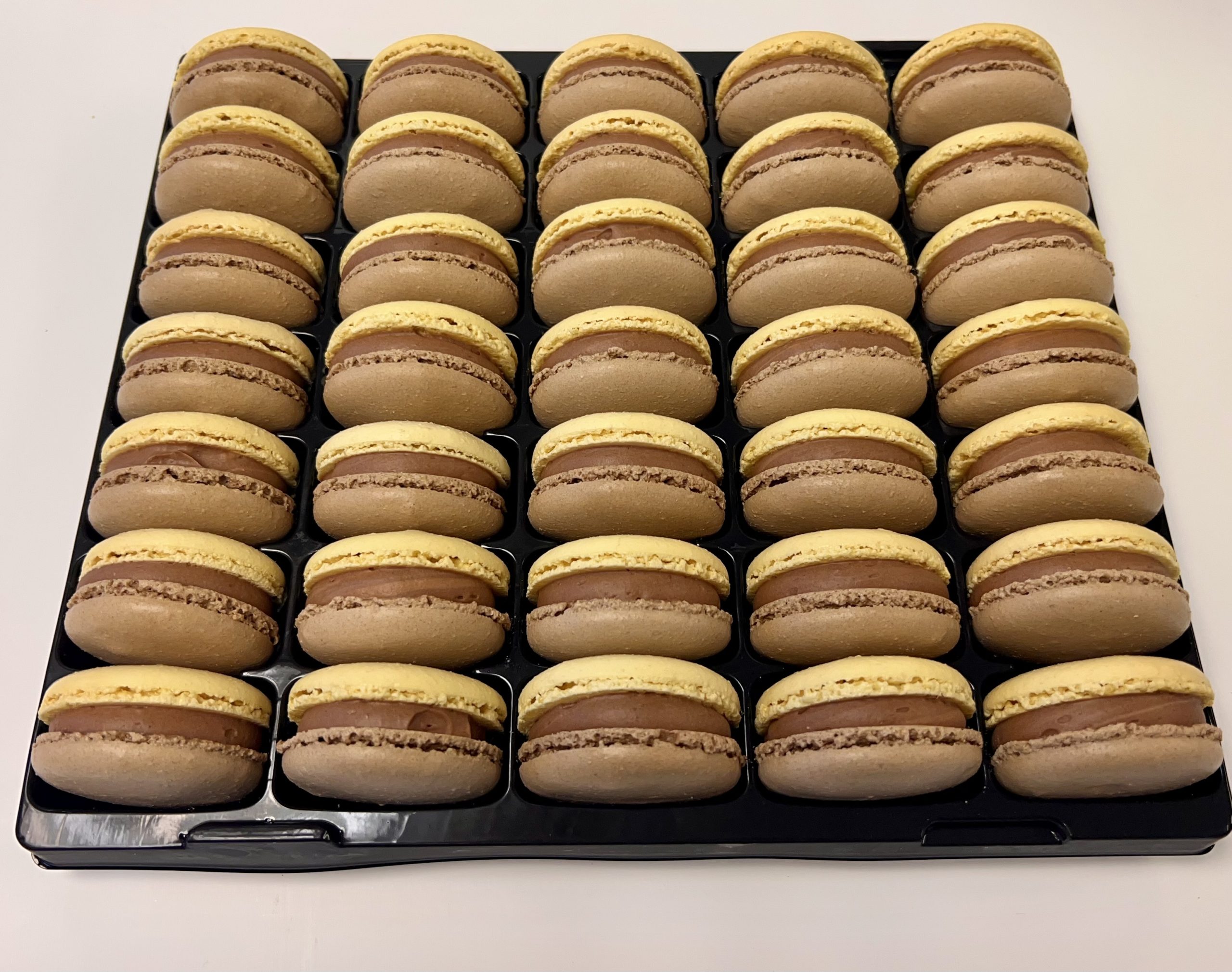 Sugar, Almonds, Egg White, Butter (Milk),Cocoa powder, Milk Chocolate (Cocoa Mass, Sugar, Whole Milk Powder Cocoa Butter, Emulsifier: Soya Lecithin, vanilla extract) Hazelnut Paste (Sugar, Hazelnuts, Lactose, Refined Vegetable Oil, Hydrogenated Sunflower Oil , Emulsifier: Soya Lecithin), Natural Vanilla Flavour, Cornflower, Rapeseed Oil, Colour Turmeric, Maltodextrin, Citric Acid, Creme of Tartar, Salt.
